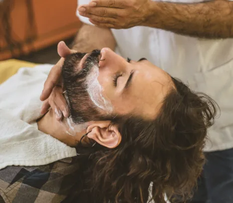 Enjoy a traditional hot towel shave for a smooth, clean, and refreshing finish.